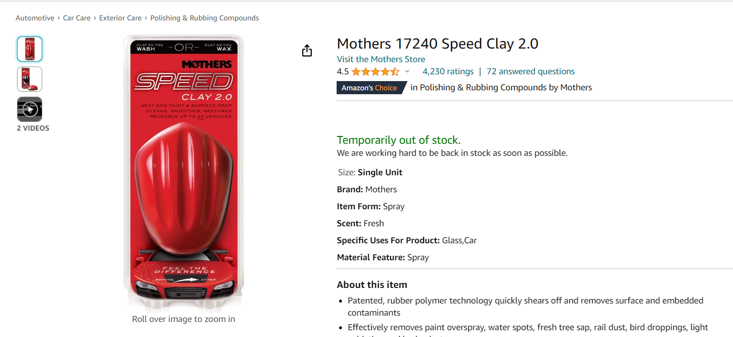 today, let us to study the Mothers 17240 Speed Clay 2.0