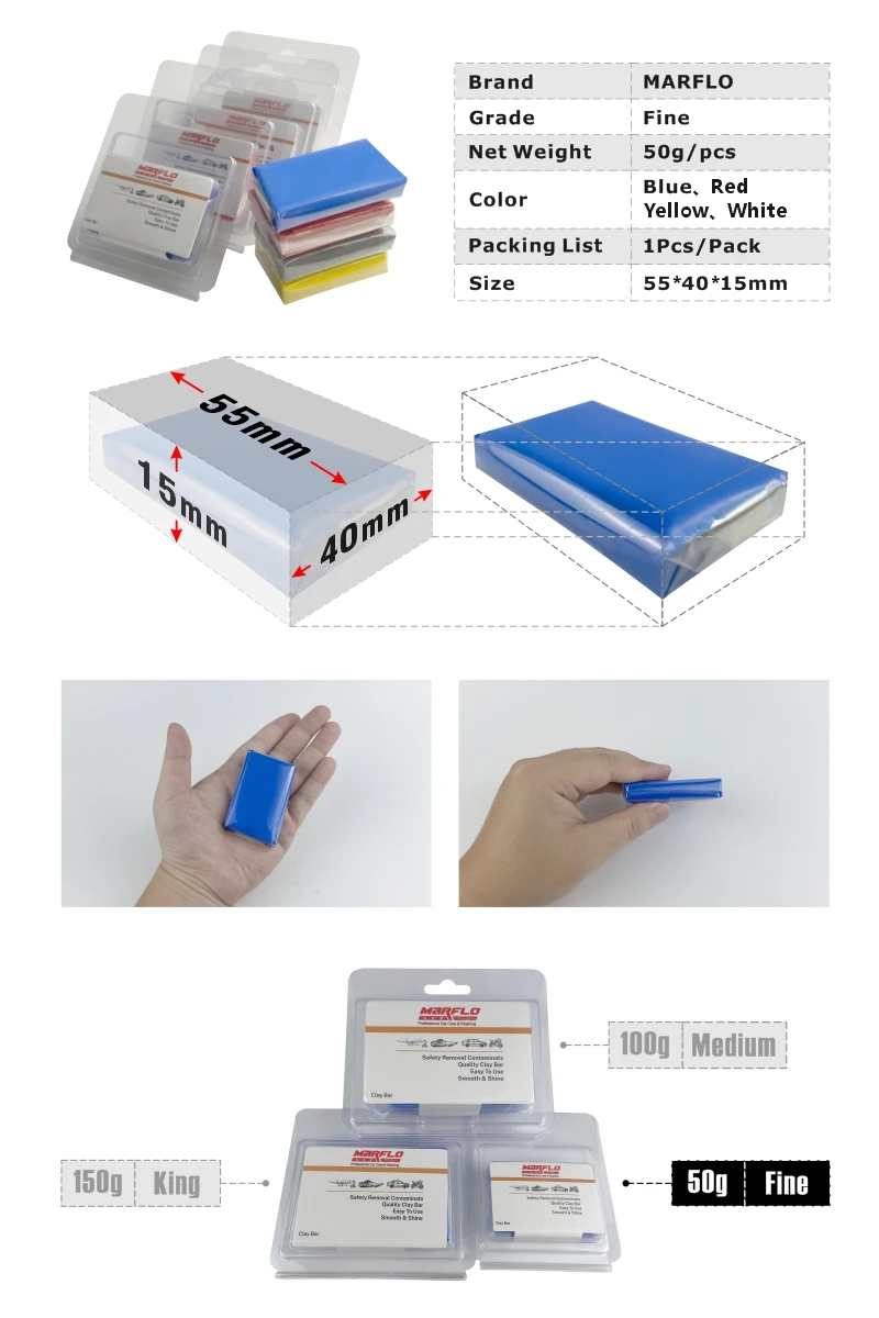 Detailing Bar, Car Wash Mud, Detailing Clay, Auto Care Clay Bar is the safety and most effective way to remove contamination from your vehicle's paintwork.New Technology easily removes over spray, rail dust, brake dust,pollution and contamination for a smooth-as-glass feel.The Clay Bar removes embedded contaminates that reduce the shine of your paintwork.The Clay Bar works great on paintwork, glass, plastic and metal surfaces.