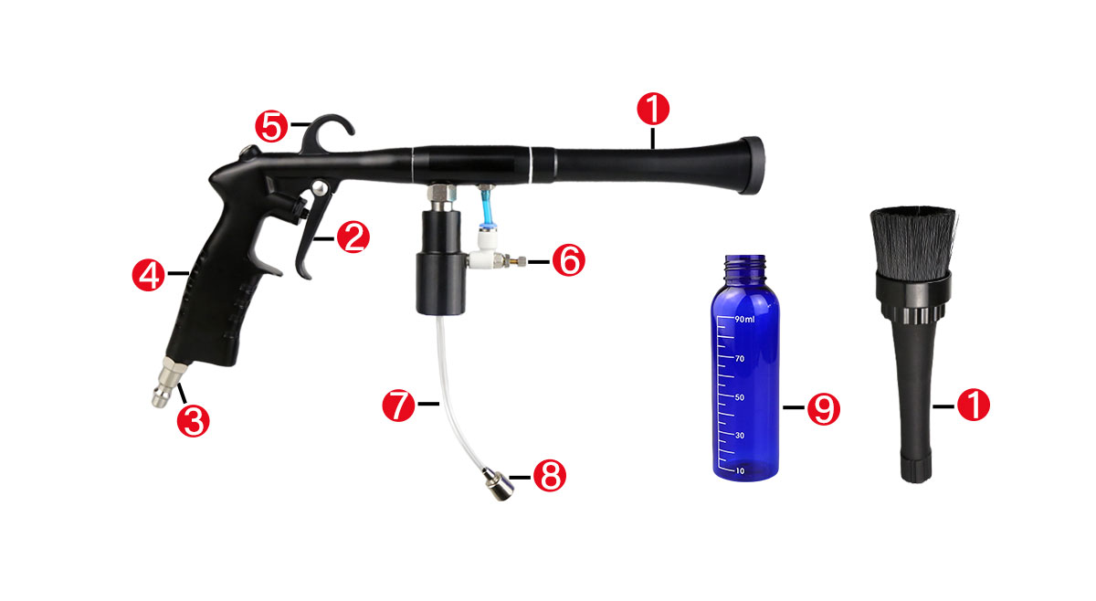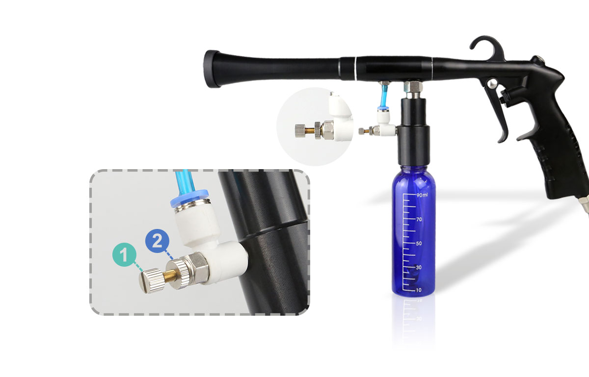 The car cleaning gun is widely used for cleaning leather car upholstery, dashboards, steering wheels, door panels, carpets, floor mats, engine surfaces, seats, meters, door panels, roofs, interiors, and so on.