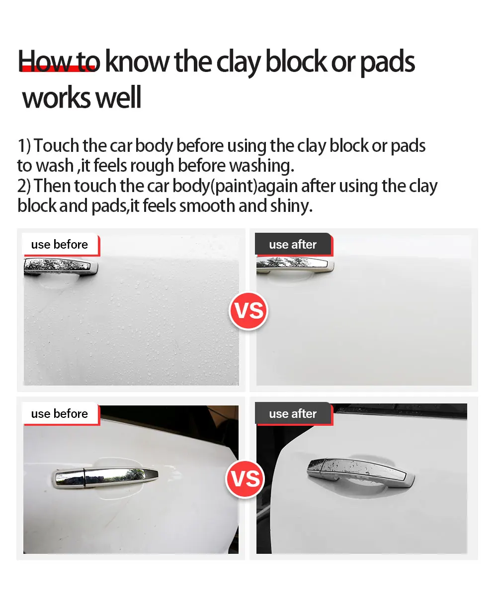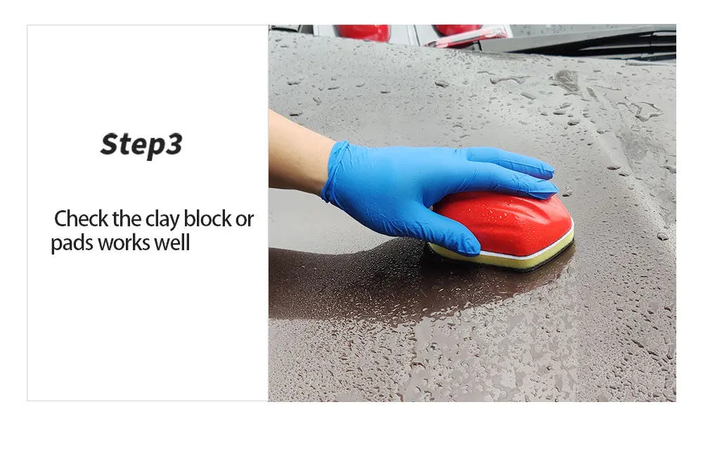 4.1) Touch the car body before use the clay block or pads wash car body. It feels rough.
